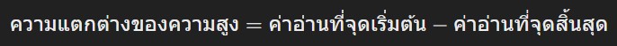 - การคำนวณความแตกต่างของความสูง: คำนวณความแตกต่างของความสูงระหว่างจุดเริ่มต้นและจุดสิ้นสุด โดยใช้สูตร: