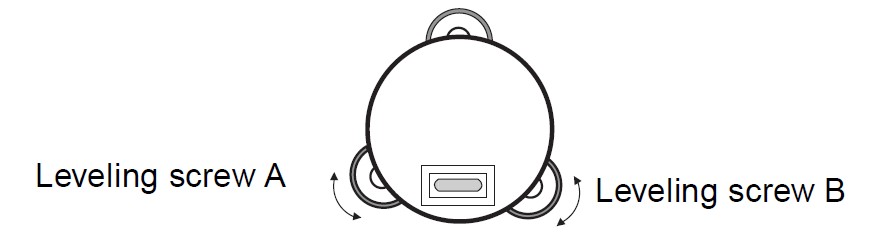 1. หมุนเครื่องมือในแนวนอนโดยใช้สกรูหมุนระดับแนวราบและวางระดับกลมให้ขนานกับเส้นที่เชื่อมระหว่างสกรูปรับระดับ A และ B จากนั้นปรับระดับฟองน้ำให้อยู่ตรงกลางของระดับกลมด้วยการหมุนสกรูปรับระดับ A และ B