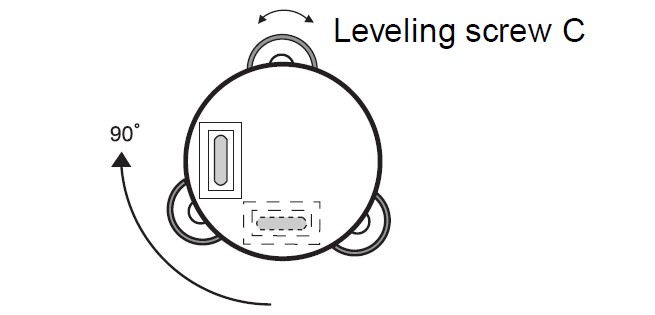 2. หมุนเครื่องมือ 90 องศารอบแกนตั้งและหมุนสกรูปรับระดับ C เพื่อตั้งฟองน้ำให้อยู่ตรงกลางอีกครั้ง